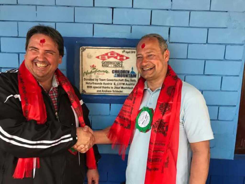 In der Region Tandrang unterstützen uns die Naturfreunde Österreich seit einigen Jahren sehr tatkräftig. Die treibenden Kräfte hier sind, GF Ernst Dullnigg Naturfreunde Niederösterreich, sowie Mag. Karin Scheele Landesvorsitzende der Naturfreunde Niederösterreich, Alpinistin Gerlinde Kaltenbrunner und Mag. Andreas Schieder Bundesvorsitzender der Naturfreunde Österreich. Durch Spendenaktionen wurden insgesamt 4 Schulen mit integrierten Kindergärten in Darme 2014, Muna 2016, Janasewa 2017 und Shankar 2018 finanziert und eröffnet. Dadurch haben die Kinder in der Region wieder neue Erdbebensichere Schulen erhalten.